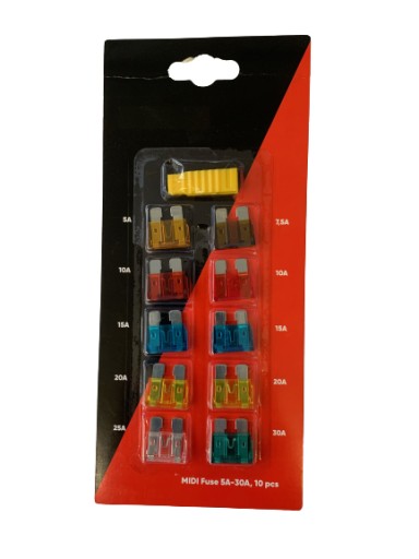 BEZPIECZNIKI PŁYTKOWE MIDI ZESTAW 5A-30A