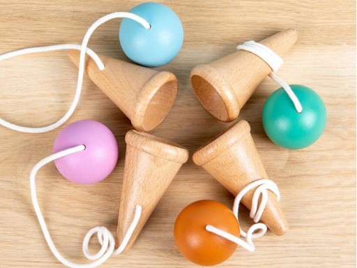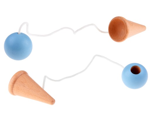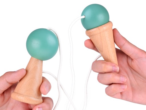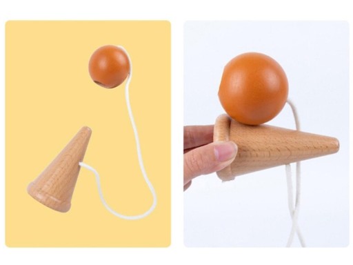 - Zręcznościowa drewniana gra złap kulkę jest jedną z najbardziej znanych gier, która polega na podrzucaniu piłki przyczepionej sznurkiem do drewnianego stożka. Wystarczy rozbujać kule i spróbować złapać ją na stożkowy uchwyt. Gra może być łatwa lub trudniejsza. W prostszej wersji należy umieścić kulkę na stożku z zagłębieniem, a w trudniejszej kulkę należy umieścić na szpicu stożka. Zabawka na pewno zapewni wiele godzin świetnej zabawy jest to doskonała zabawa nie tylko dla dzieci. Gra ćwiczy precyzję i cierpliwość dziecka, a także wspiera koordynację ruchową. Zabawka w całości została wykonana z drewna.