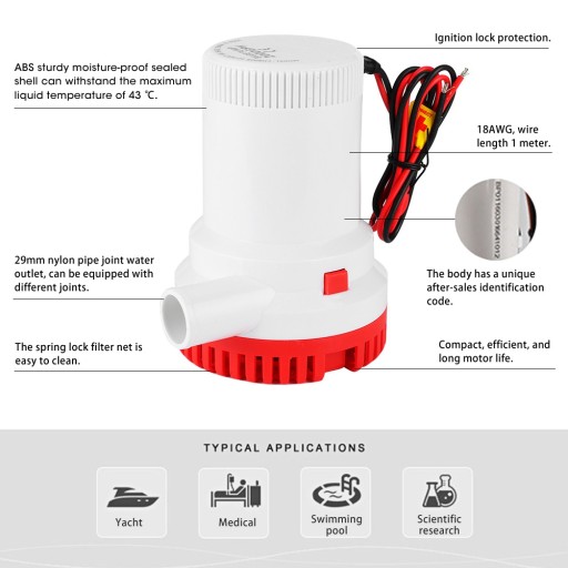 Zwykle stosowany w kadłubach łodzi / zęzach, zbiornikach na przynęty
