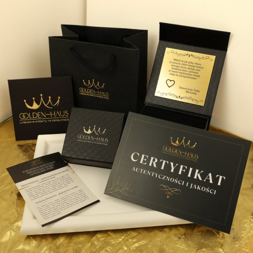 - ➡️ Złotą tabliczkę z grawerem (własny tekst).