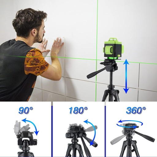 2. OBRÓT O 360 STOPNI: Statyw poziomujący jest wyposażony w stabilną głowicę trójkierunkową i poziomicę z funkcją obrotu o 360°, którą można przechylać i obracać; Dostępne są opcje pionowe lub poziome, aby dopasować się do dowolnego kąta wymaganego przez użytkownika