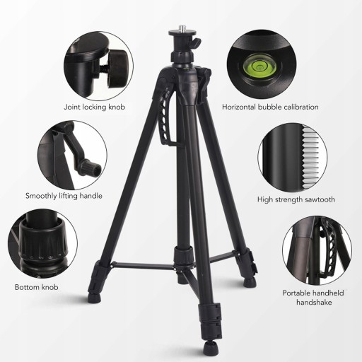 Cecha: 1. WYTRZYMAŁA KONSTRUKCJA ALUMINIOWA: Wykonany z anodyzowanej aluminiowej kolumny środkowej i środkowego usztywnienia zapewniających długotrwałą trwałość, ten statyw na poziomie statywu jest trwały.