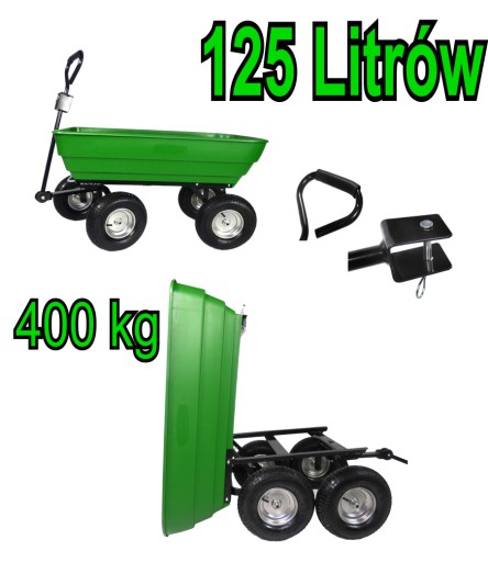 Duzy wózek ogrodowy z funkcją wywrotki - miękka rękojeść lub zaczep do traktorka/quada/gokarta