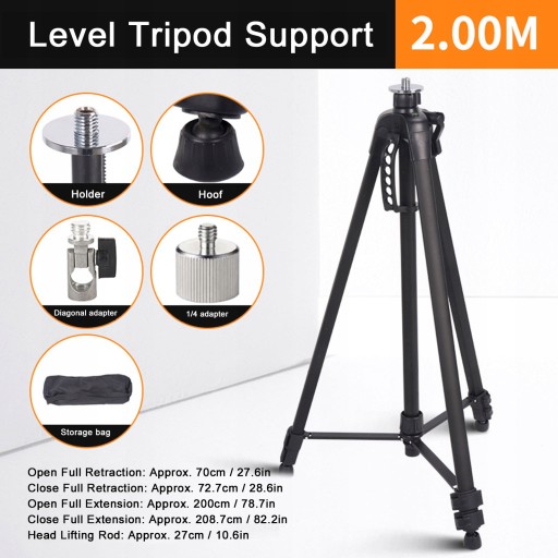 1. Stabilny i dokładny: statyw poziomujący jest wyposażony w 3-kierunkowe przechylanie panoramy i poziomicę, co zapewnia stabilne podparcie i dokładny pomiar, znacznie poprawiając wydajność prac niwelacyjnych.
