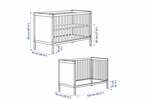 - Jeden bok łóżeczka można usunąć, gdy dziecko jest już na tyle duże, aby wchodzić/wychodzić z łóżeczka.