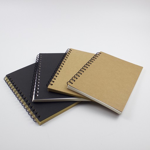 ✅1 x Vintage papier pakowy spiralny szkicownik dziennik pamiętnik z terminarzem notatnik dla studentów pisanie w biurze rysunek (czarna okładka)