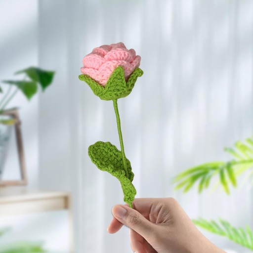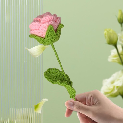 Szydełkowy kwiat róży Dzianiny Kwiat na rocznice ślubu Romantyczny prezent Różowy