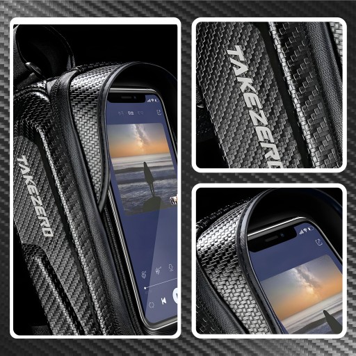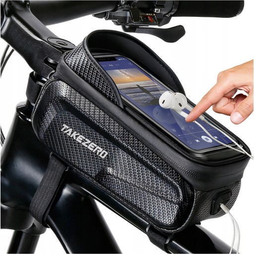 Sakwa wyposażona jest w przezroczystą kieszeń na telefon, która umożliwia obsługę ekranu dotykowego bez konieczności wyjmowania urządzenia.