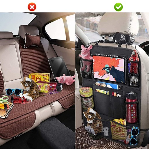 ✔️ Duża pojemność: Organizer na oparcie fotela samochodowego zapewnia dużo miejsca do przechowywania napojów, przekąsek, książek, zabawek itp., dzięki czemu podróż z dzieckiem staje się łatwiejsza i przyjemniejsza.