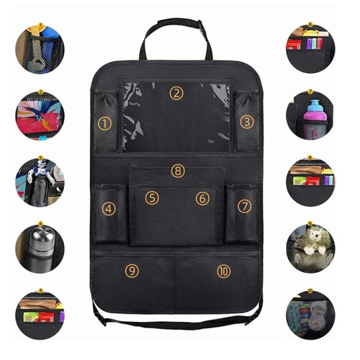 🚘️Torba do przechowywania na oparcie fotela samochodowego z 10-calową przezroczystą kieszenią z okienkiem, wodoodporna tkanina Oxford