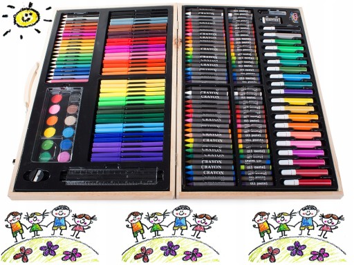 ZESTAW ARTYSTYCZNY DO MALOWANIA W WALIZCE 180 SZT DREWNIANA WALIZKA