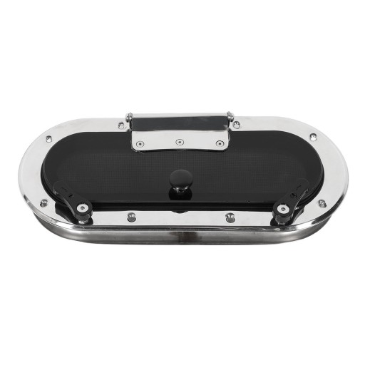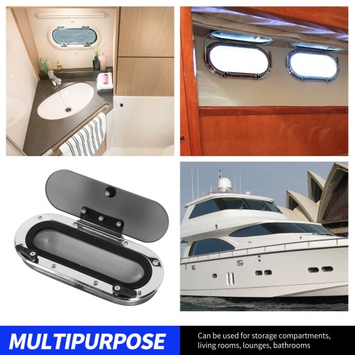 1. Rama ze stali nierdzewnej: Caa rama i zawiasy iluminatora są wykonane ze stali nierdzewnej klasy morskiej, polerowanej do gadkiego wykończenia, odpornej na rdzę i trwaej, zachowującej nowy wygląd nawet w trudnych warunkach morskich lub zewnętrznych.