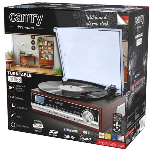 Gramofon CR1168 marki CAMRY nawiązuje do czasów, w których muzyka z płyt winylowych towarzyszyła zarówno poważnym obiadom na salonach, jak i radosnej zabawie tanecznej. Obecnie wybierają go koneserzy, którzy doceniają nie tylko wartość muzyczną, ale też wyjątkowy wygląd.