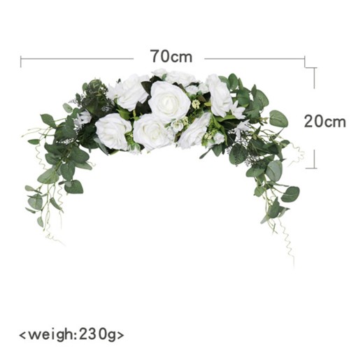 Wieniec na drzwi z łuku ślubnego to w całości ręcznie wykonane wysoce sztuczne kwiaty, porównywalne ze świeżymi kwiatami i mogą być używane przez wiele lat. Może zachować świeży wygląd bez więdnięcia i powodowania alergii.