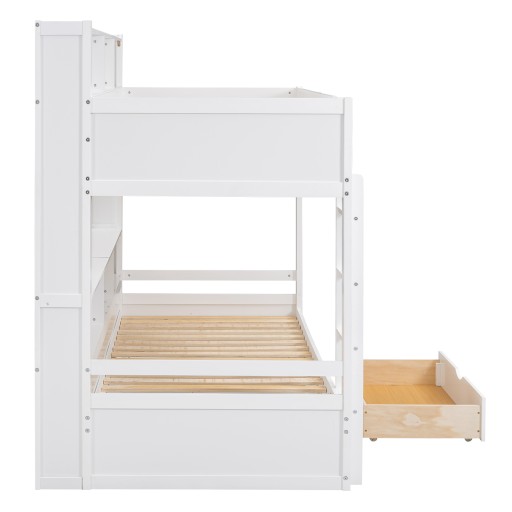 Детская двухъярусная кровать с ящиками и отделениями для хранения вещей 90х200см Белый