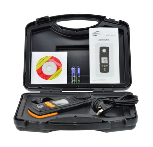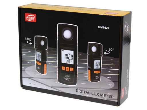 Luksomierz GM1020 o zakresie 0-200 000 Lux to urządzenie służące do pomiaru natężenia światła. Miernik posiada podświetlany wyświetlacz oraz funkcję automatycznego pomiaru. Cechuje go również krótki czas próbkowania. Po pięciu minutach bezczynności, luksomierz wyłącza się samoczynnie.