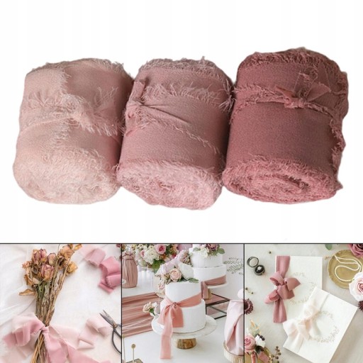 3 Válečky Fringe Šifonová Hedvábná Stuha 2 "x 5 Jardů Zabalení Dárek Růžová Série
