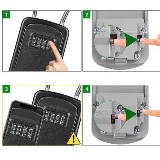 【4-cyfrowe pokrętło kombinowane】🔓️ Zapewnia do 10 000 opcji kombinacji. Dołączona pokrywa na zawiasach umożliwia obsługę jedną ręką. Jasne instrukcje pomogą Ci zresetować kod dostępu w dowolnym momencie. Pamiętaj, że po zresetowaniu hasła najlepiej zrobić zdjęcie i zapisać je, w przeciwnym razie nie będzie można go otworzyć.