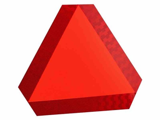 Duży trójkąt ostrzegawczy dla pojazdów wolnobieżnych. Wykonany z blachy pokrytej odblaskową powłoką PCV. Nie posiada nóżki.