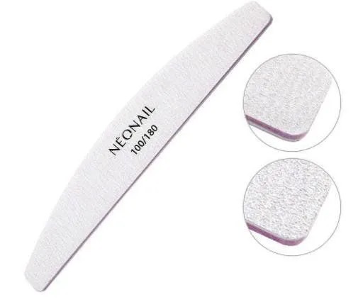 - Pilnik szary łódka 100/180 NEONAIL Dwustronny, profesjonalny pilnik służący do opiłowywania i skracania paznokci naturalnych oraz przedłużonych. Niezastąpiony przy nadawaniu kształtu masy żelowej lub akrylowej a także do przygotowania tipsa przed nałożeniem żelu. Strona drobnoziarnista (180) idealnie nadaje się do modelowania brzegów paznokcia a średnioziarnista (100) ułatwi usunięcie poprzedniej stylizacji.