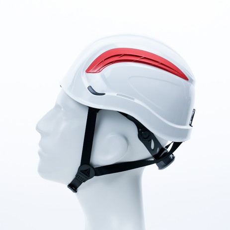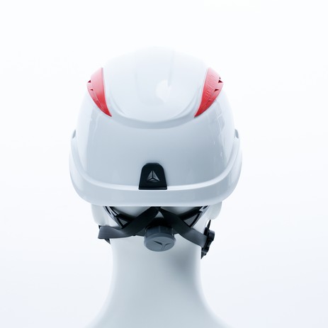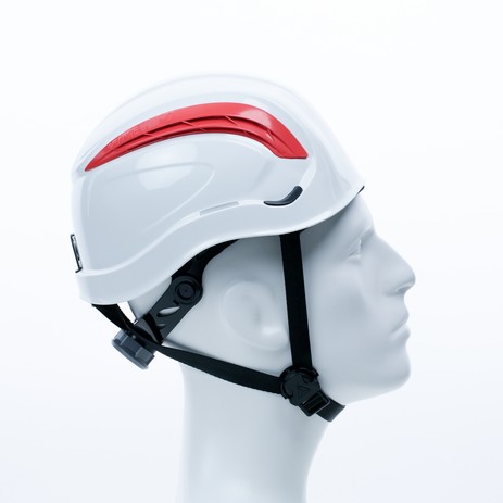 Hełm ochronny do prac na wysokości, wentylowany, z ABS, wyposażony w 3-punktowy pasek podbródkowy
