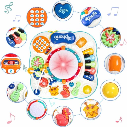 🍭IDEALNY PREZENT DLA DZIECKA: Niezależnie od tego, czy jest to chłopiec, czy dziewczynka, ten wszechstronny instrument muzyczny dla dzieci w wieku od 1 roku życia będzie doskonałym prezentem urodzinowym, prezentem na Halloween, prezentem na Boże Narodzenie i innymi ważnymi prezentami świątecznymi dla chłopców w wieku 1 roku, 2 lat i 3 lat. Co zaskakujące, ten stół do zabawy dla dzieci w centrum aktywności jest odpowiedni dla dzieci do zabawy z rodziną i przyjaciółmi, co sprzyja komunikacji i interakcjom w rodzinie.