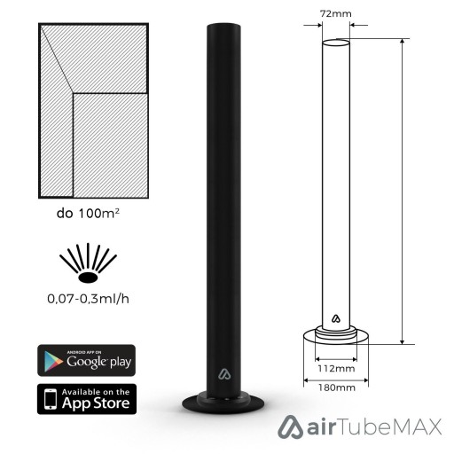 AirTube MAX jest po prostu większą gabarytowo wersją AirTube. Dyfuzor ten dzięki nowoczesnej stylistyce pasuje do każdej aranżacji wnętrza. Posiada funkcję sterowania i programowania za pomocą aplikacji mobilnej oraz prawie wcale nie potrzebuje obsługi. Idealny do pomieszczeń i lokali od 60 do 100 m2.