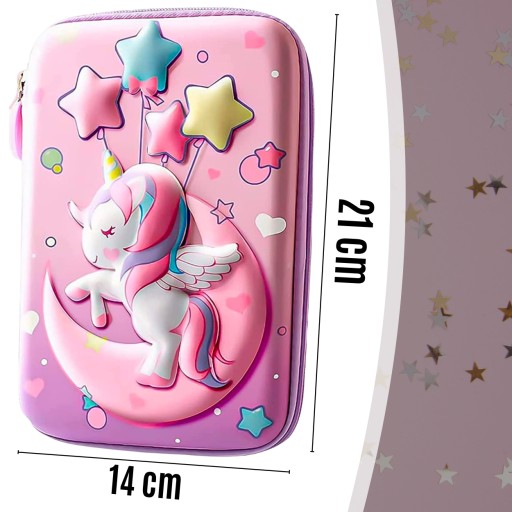 PIÓRNIK SZKOLNY DO SZKOŁY RÓŻOWY JEDNOROŻEC 3D ORGANIZER NA KREDKI MAZAKI