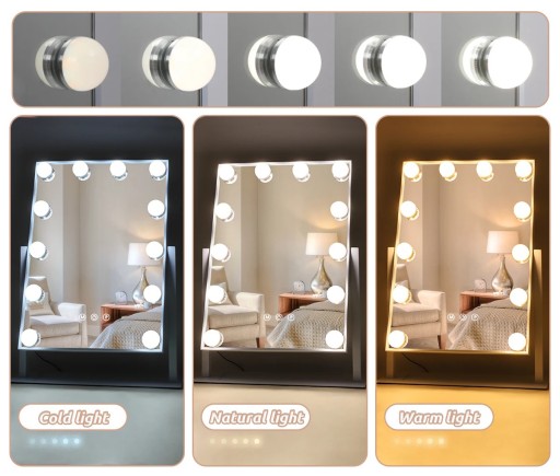 - Duże lusterko wyróżnia się ekstrawaganckim designem z 12 żarówkami LED.