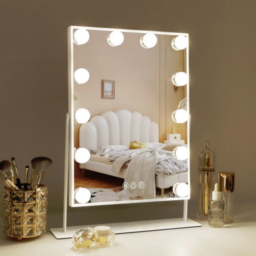 Dzięki 12 jasnym diodom LED z łatwością wykonasz dowolny makijaż nawet w pomieszczeniach ze słabym oświetleniem. Dotykowe przyciski na lustrze umożliwiają zmianę barwy światła pomiędzy ciepłym białym, naturalnym i zimnym białym oraz jego intensywności. Stabilny, metalowy stojak z antypoślizgowym materiałem gwarantuje, że lusterko nie przewróci się gdy będziesz zmieniać jego kąt nachylenia w trakcie wykonywania makijażu. Minimalistyczny design i biały kolor sprawiają, że lusterko będzie stylowym dodatkiem do Twojej toaletki czy łazienki, doskonale komponując się z każdym wnętrzem.