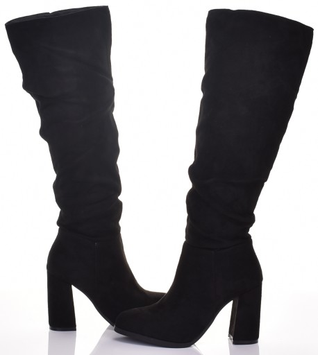 ЗИМНИЕ ЗАМШЕВЫЕ БОТИНКИ НА КАБЛУКЕ ДО КОЛЕНА