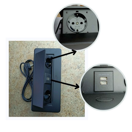 PODWÓJNE GNIAZDO PRZEDŁUŻACZ GNIAZDO 2X USB CHOWANE W BLAT 4 GNIAZDA