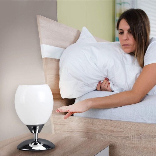 LAMPKA NOCNA - BIAŁE SZKŁO - CHROM - ZAPLANA DOTYKIEM - E27 - SYPIALNIA
