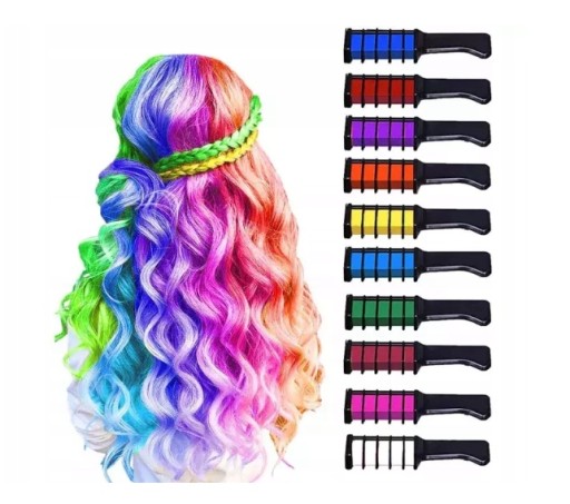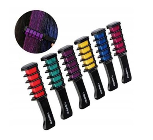 Grzebień z kredą farbującą to idealne rozwiązanie. Kreda rozpuszcza się w wodzie przez co łatwo się zmywa. Niezwykłe kolory dodadzą Ci super wyglądu czy to na wyjście czy na co dzień!