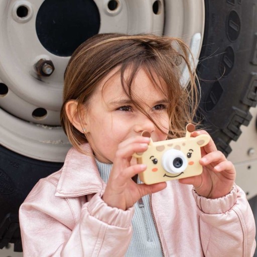 Aparat cyfrowy Zoo Friends - Giraffe przyciąga wzrok swoim niezwykłym wyglądem. Jasna obudowa z brązowymi plamkami imituje charakterystyczne umaszczenie żyrafy. Aparat ma wygodne uchwyty i intuicyjne przyciski, co sprawia, że jest idealny dla małych dzieci.