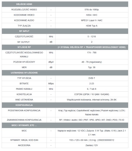 Modulator HDMI do DVB-T: 1 wejście HDMI / 1 wejście RF - wyjście