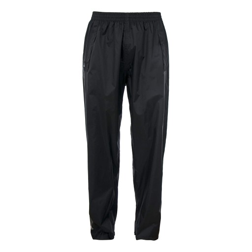 Wodoodporne spodnie unisex. Wodoodporność 5000mm i oddychalność 5000mvp. Pakuje się w siatkowe etui. Pełna elastyczna talia. Otwory kieszeni. Zapięcia na napy. 100% poliamid, powłoka PU.