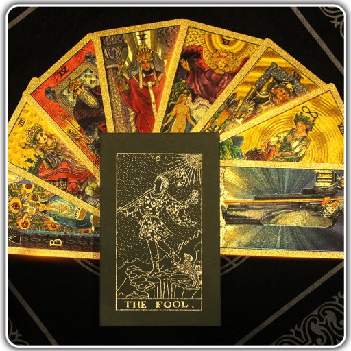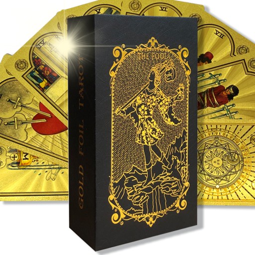 ⭐ Nasze karty tarota wykonane zostały z najwyższą starannością, używając wysokiej jakości materiałów, a następnie pokryte zostały złotą folią, nadając im niezwykły efekt lśniącego blasku.
