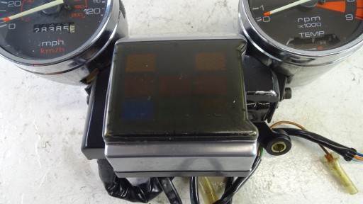 Liczniki komplet jak na zdjęciach, sprawne, kubek licznika otarty, rysy na chromie, sprzedaję dokładnie to, co widać na zdjęciach.