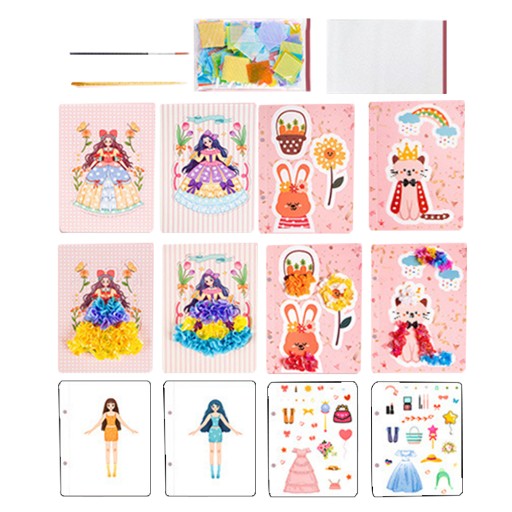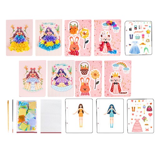 ✅3 x naklejki, 8 x papier do kolorowania, 2 x płytki bazowe z naklejkami, 5 x hafty do nakłuwania, 1 x płytka do nakłuwania, 1 x długopis, 1 x kolorowy karton, 1 x woreczek z materiałem, 2 x rysunki referencyjne
