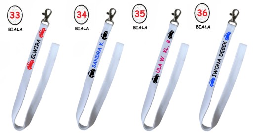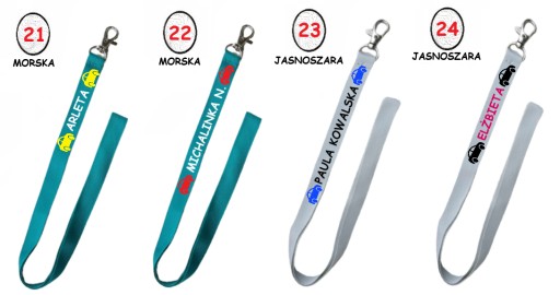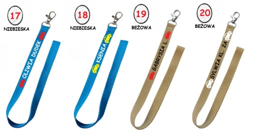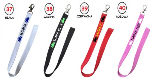 * smycz (na srebrnym karabińczyku) w wielu kolorach do wyboru, m.in. czarnym, białym, błękitnym, bordowym, zielonym, czerwonym, żółtym itp.