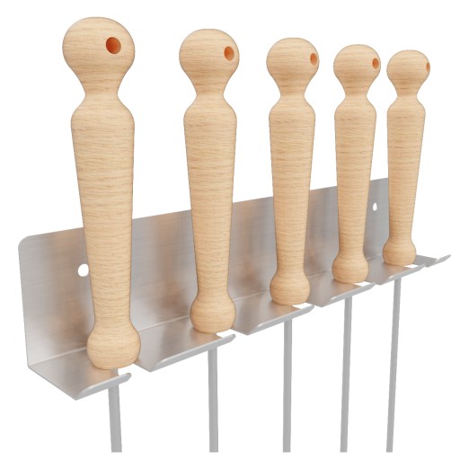 - Ergonomiczna Rączka: Wykonana z naturalnego drewna bukowego, rączka jest woskowana dla ochrony przed wilgocią i zabrudzeniami, zapewniając wygodę użytkowania.
