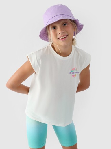 4F Top z nadrukiem dziewczęcy - biały