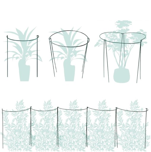 Pierścienie podtrzymujące rośliny są wykonane ze stali z ciemnozieloną powłoką z tworzywa sztucznego, trudną do zginania, stabilną, wodoodporną, odporną na rdzę, niełatwą do wyblaknięcia, trwałą i wielokrotnego użytku. Ciemnozielony wygląd harmonijnie łączy się z roślinami i jest prawie niewidoczny i bardzo naturalny.