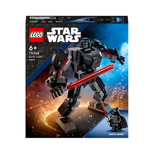 Pokaż dzieciom ciemną stronę świata LEGO® Star Wars™ dzięki temu zbudowanemu z klocków Mechowi Dartha Vadera (75368) do zabawy i ustawienia na półce. Ruchomy mech ma otwierany kokpit na minifigurkę LEGO Dartha Vadera, klips na miecz świetlny i chwytne dłonie, w których można trzymać wielki czerwony miecz świetlny.