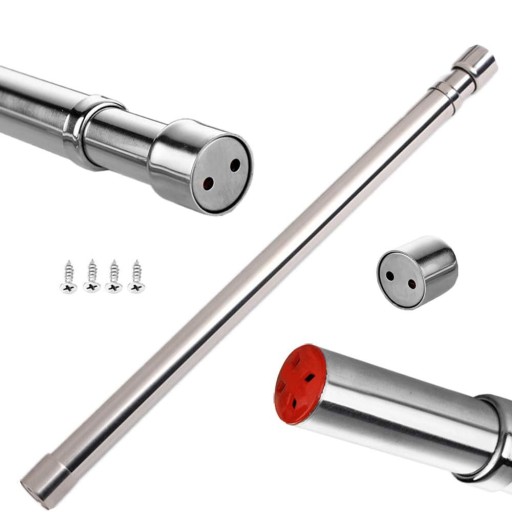 Przedłużany drążek do zawieszania osadzony w szynie ze stali nierdzewnej, polerowana powierzchnia lustrzana, szafa, łazienka, balkon