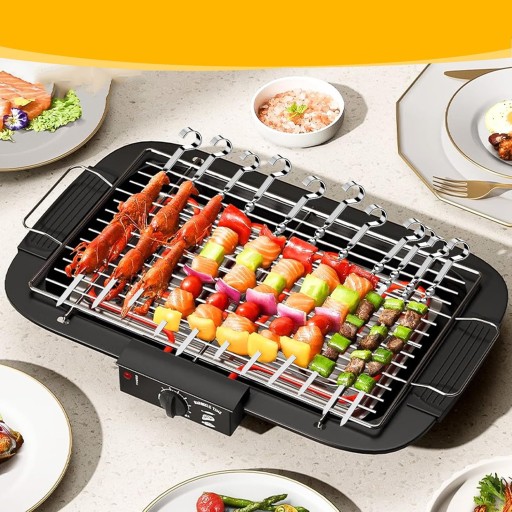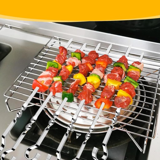 ➡️ Płaski metalowy szpikulc: Szeroki i płaski zamiast okrągły. metalowe szaszłyki do kebaba utrzymują wszystko na swoim miejscu, dzięki czemu mięso i warzywa nie poruszają się, gdy próbujesz odwrócić szpikulec na grillu, co skutkuje pięknymi śladami grillowania.