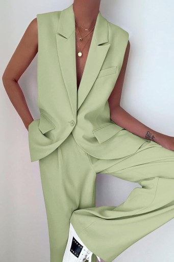 Женские комплекты-двойки, жилет без рукавов и широкие брюки.