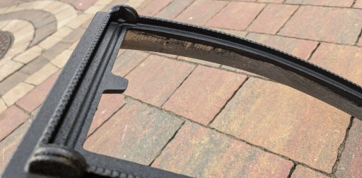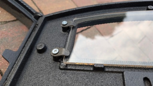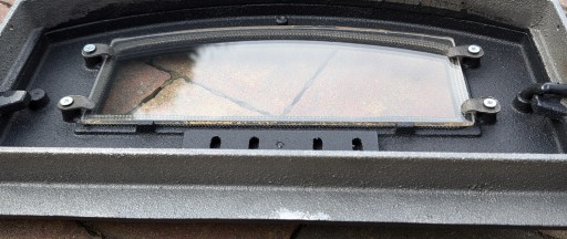 Drzwiczki hermetyczne żeliwne półokrągłe z szybą żaroodporną na 800°C do pizzy, pieca chlebowego itp.
