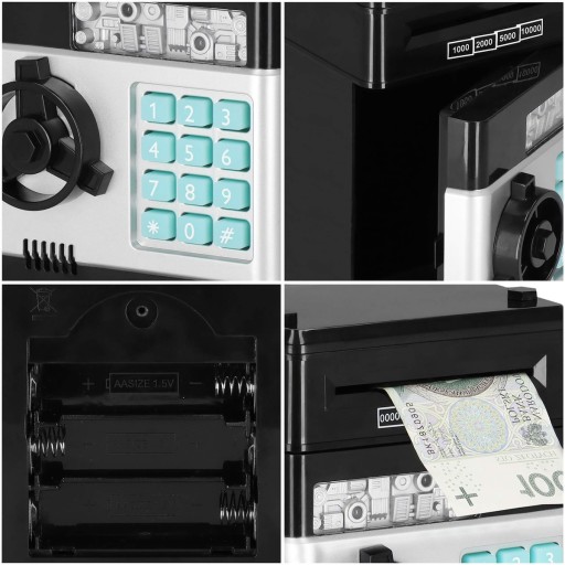 ⭐Nauka odpowiedzialności: Dzięki skarbonce sejf, dzieci uczą się wartości oszczędzania i odpowiedzialności finansowej już od najmłodszych lat.